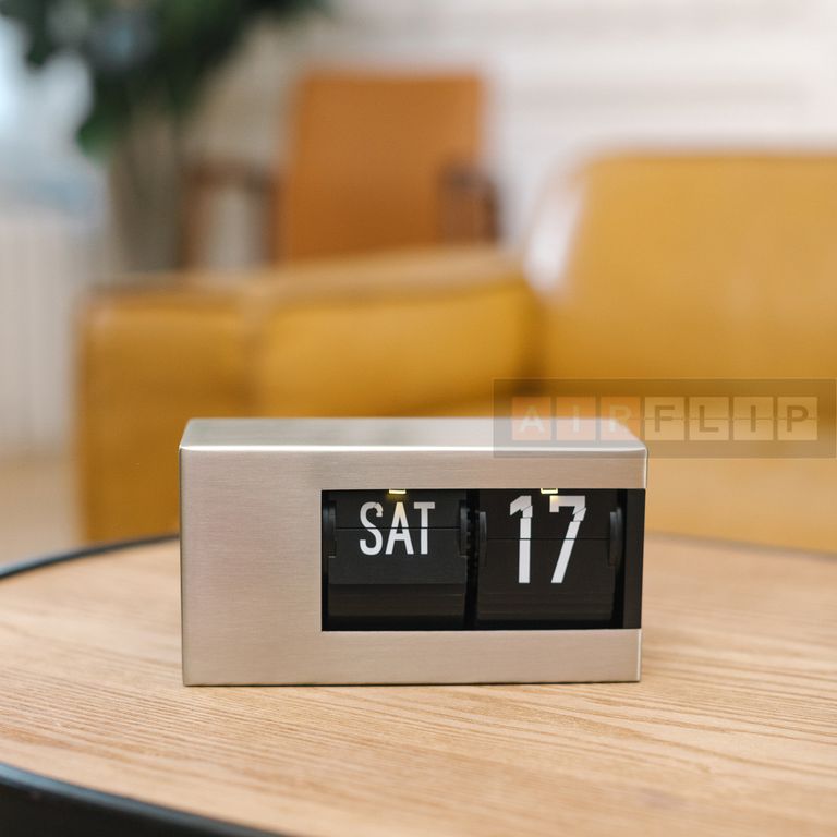 Уникальный автоматический перекидной календарь Air-flip SmartDate 2.0 сочетает элегантность винтажного дизайна с передовыми технологиями. Компактный корпус из матовой стали станет стильным акцентом на рабочем столе или в интерьере, а интеллектуальная начинка сделает его вашим надежным помощником.